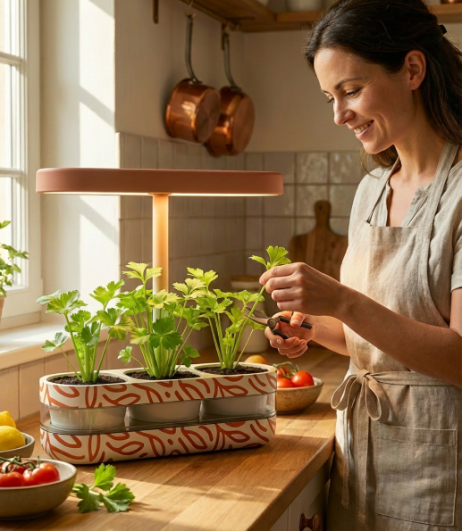 Grâce à notre potager intelligent 100 % Made in France, cultiver devient simple, agréable et accessible à tous — même sans espace extérieur.